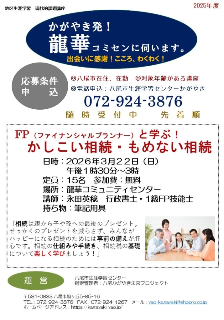 | 相続は親から子や孫への最後の贈り物。せっかくの贈り物を減らさず、みんなが幸せになる相続のためには事前の備えが肝心です。相続の仕組みや手続き、相続税の基礎について楽しく学びましょう!! |