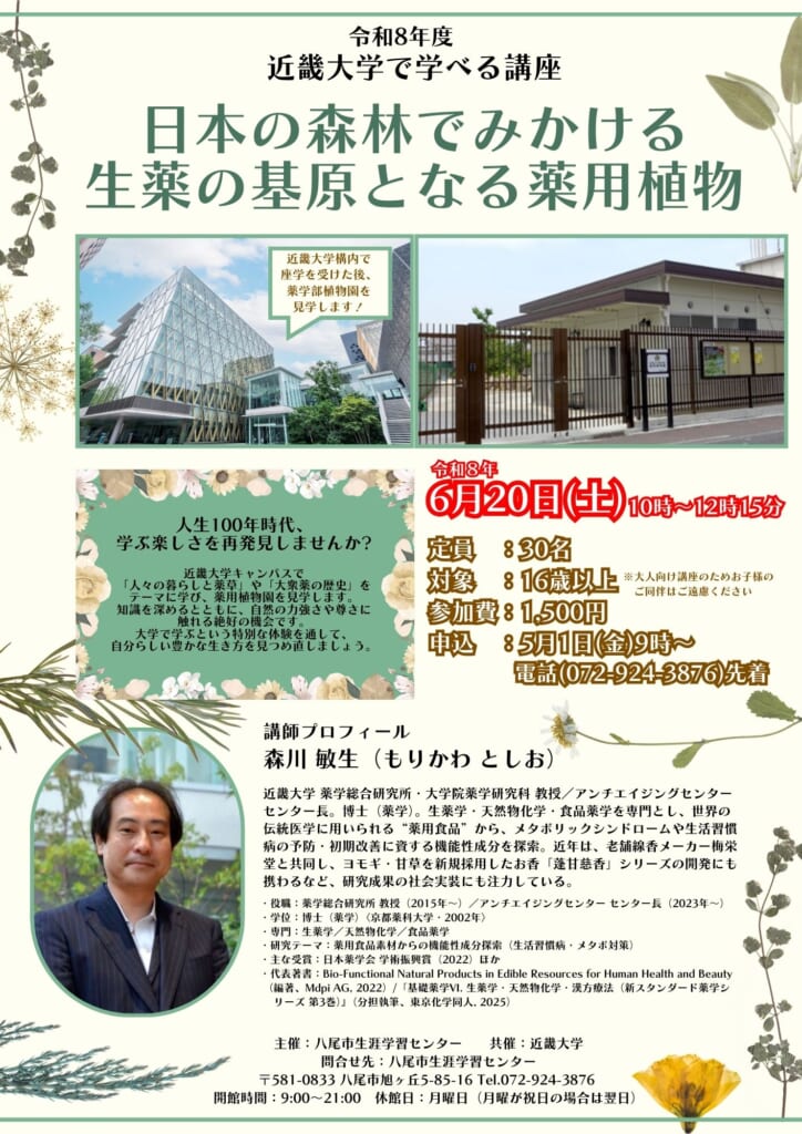 | 講 師 | 近畿大学薬学部総合研究所教授 森川 敏生 |