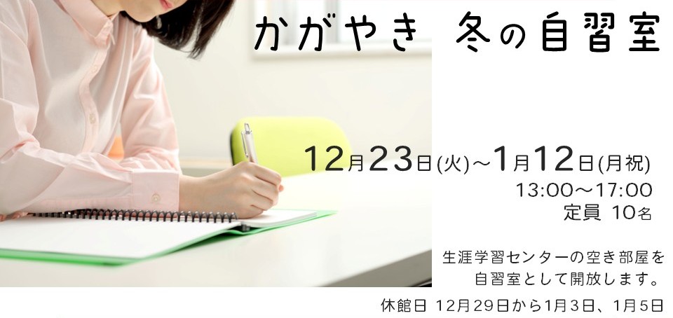 生涯学習センターにひとりの勉強や、友達との勉強に使える自習室が登場。