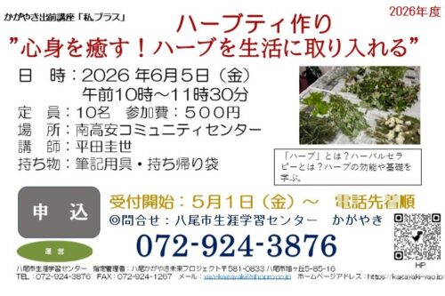 南高安コミセン かがやきアウトリーチ講座「私、プラス」 セルフで簡単!ハーブティ作り!”心…